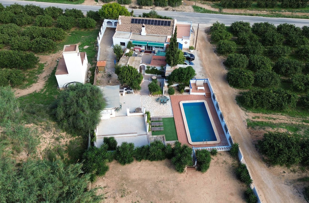 Country House Discover this charming Mediterranean finca nestled in the peaceful, natural surroundings of Pinar de Campoverde. Sitting on a substantial 3,221m² plot, this property offers exceptional privacy, ample space, and a true Spanish country-living feel while being just moments from local amenities. The finca features a 145m² build size distributed across 4 spacious bedrooms and 2 well-appointed bathrooms, making it suitable for families or guests. The home includes two comfortable living rooms, offering flexible areas for relaxation, entertainment, or dining. Enjoy the warm Spanish climate from the large terrace/solarium, perfect for outdoor dining, sunbathing, or taking in the views of your private grounds. The highlight of the property is the private swimming pool, accompanied by a charming outdoor bar, creating an inviting setting for gatherings and long summer days. The expansive plot provides off-road private parking, landscaped areas, and additional space ideal for gardening, recreation, or potential future enhancements. The home is efficiently powered with solar electricity, helping reduce energy costs. Located just a short distance from the vibrant village of Pilar de la Horadada, you'll have easy access to supermarkets, restaurants, shops, and services. The beautiful sandy beaches of the Costa Blanca are only a 10-minute drive away, adding to the appeal of this stunning countryside retreat. This finca offers a rare opportunity to own a spacious, well-located property with endless lifestyle benefits — perfect as a permanent home, holiday getaway, or investment.Buy with confidence
