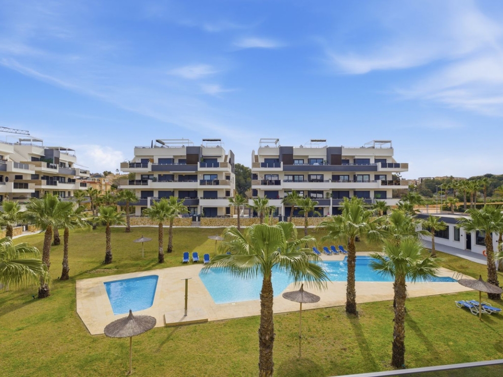 Apartment Luxury new-build apartment with large terrace in Amanecer X – resort with pool, gym & spa Luxury apartment for sale in Amanecer X – Los Altos, Orihuela Costa Discover this nearly new luxury apartment (construction started in 2023) in the prestigious Amanecer X residential complex in Los Altos – Orihuela Costa. This modern apartment combines comfort, design and a prime location, making it ideal as a holiday home, permanent residence or investment. Layout & Living Comfort The apartment features a bright open-plan living area with large windows that provide plenty of natural light and direct access to the spacious terrace. The modern designer kitchen is fully equipped with high-quality appliances and integrates seamlessly with the living room. 2 spacious bedrooms with built-in wardrobes located on the terrace side 2 modern bathrooms Open-plan living area with abundant natural light Luxury finishes throughout the apartment Outdoor Space Enjoy the Spanish lifestyle on the spacious private terrace of 29 m² with views over the beautifully landscaped gardens and the swimming pool. Key Features Private terrace of 29 m² Underground parking space and storage room included Airzone climate control system Underfloor heating in the bathrooms Electric shutters Move-in ready & recently built (2023) Exclusive Residential Resort Amanecer X offers a resort-style experience with high-end facilities: Large communal swimming pool Children's pool Gym Jacuzzi and sauna Beautifully landscaped tropical gardens Prime Location – Orihuela Costa Perfectly located in Los Altos, within walking distance of all amenities: ?️ 5 min – La Zenia Boulevard ⛳ 10 min – several golf courses ? 10 min – beaches of Orihuela Costa ?️ Restaurants and supermarkets within walking distance ? Ideal for: ✔ Holiday rentals ✔ Personal use ✔ Investment with returnBuy with confidence