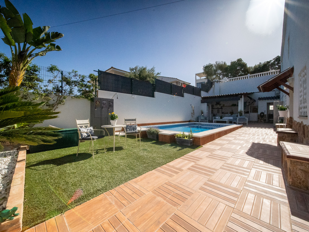 Villa Semi-detached Villa with 4 Bedrooms in Los Balcones, Torrevieja. Semi-detached property located in one of Torrevieja’s most exclusive neighbourhoods: Los Balcones. The home offers 130 m² built over two floors. The ground floor includes a living-dining room, an independent kitchen, one bedroom and one bathroom. Upstairs, you'll find three bedrooms, one bathroom and a glazed terrace. It also features a 161 m² garden with a covered summer kitchen, a guest toilet, chill-out area and private pool. Prime location, right across from the Torrevieja Tennis Club, which offers tennis and padel courts, gym, swimming pool and a multi-purpose room. Within walking distance you’ll find bars, restaurants and shops. The Torrevieja University Hospital is less than five minutes away by car, and Zenia Boulevard shopping centre is just 10 minutes away. Key features: 4 bedrooms, 2 bathrooms and 1 guest toilet Independent kitchen Renovated Furnished Summer kitchen Chill-out area Private poolBuy with confidence