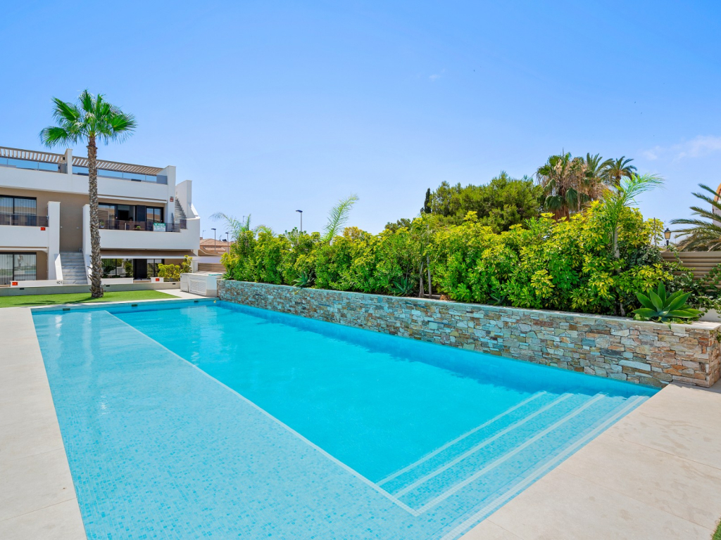 ApartmentSpain1 are pleased to present this modern and spacious 3 bedroom, 2 bathroom top floor apartment in a popular gated community with communal pool in San Pedro del Pinatar.